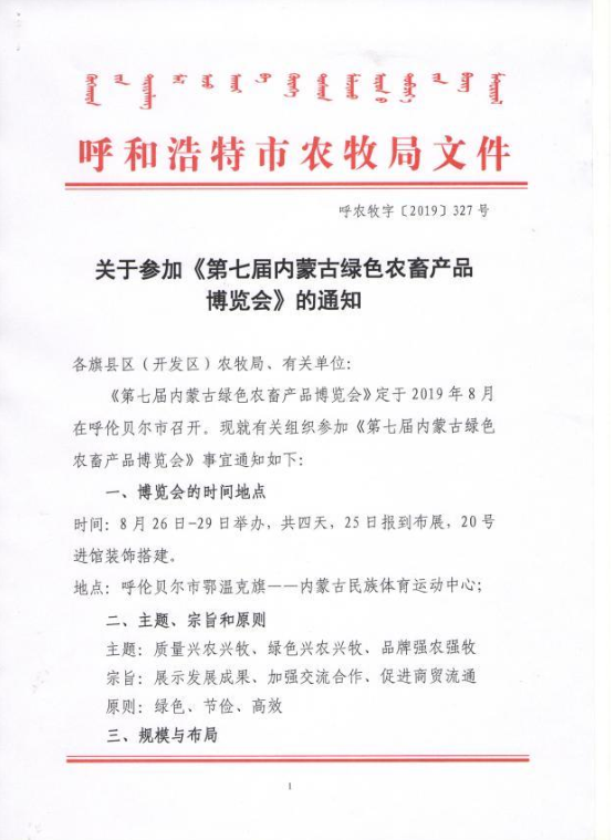 按照內蒙古自治區(qū)農牧廳《關于舉辦呼倫貝爾國際綠色發(fā)展大會暨第七屆內蒙古綠色農畜產品博覽會的通知》(內綠博組辦發(fā)〔2019〕1號)的要求,由自治區(qū)農牧廳、中國國際貿易促進委員會內蒙古自治區(qū)委員會、自治區(qū)生態(tài)環(huán)境廳和呼倫貝爾市人民政府共同主辦的呼倫貝爾國際綠色發(fā)展大會暨第七屆內蒙古綠色農畜產品博覽會(以下簡稱綠博會)于2019年8月26-29日在內蒙古民族體育運動中心(呼倫貝爾市鄂溫克旗)舉辦,其中內蒙古萬利福生物科技有限公司應邀參加本次展會,4天時間歡迎各合作伙伴前來洽談合作: